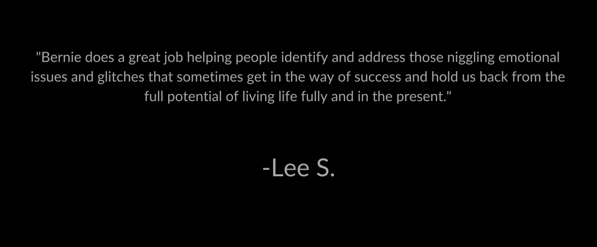 "Bernie does a great job helping people identify and address those niggling emotional issues and glitches that sometimes get in the way of success and hold us back from the full potential of living life fully and in the present."